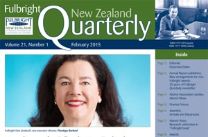 In this issue, read about the appointment of Fulbright New Zealand’s new executive director Penelope Borland, publication of the 2014 Fulbright New Zealand Annual Report, and 20 years of the Fulbright Quarterly newsletter.